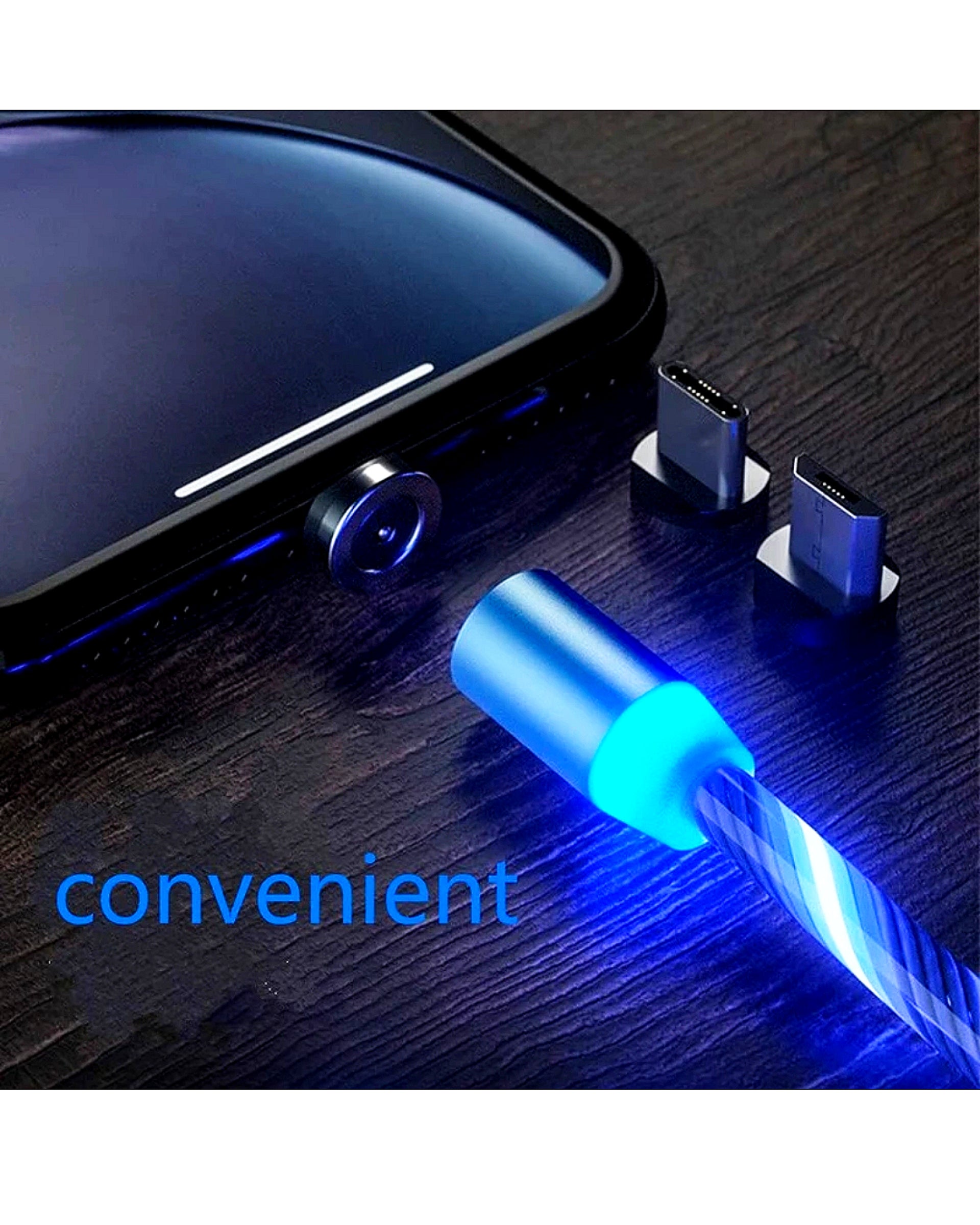 3 in 1 3A Magnetic LED Flowing Light USB Charging Cable with 3 Connectors