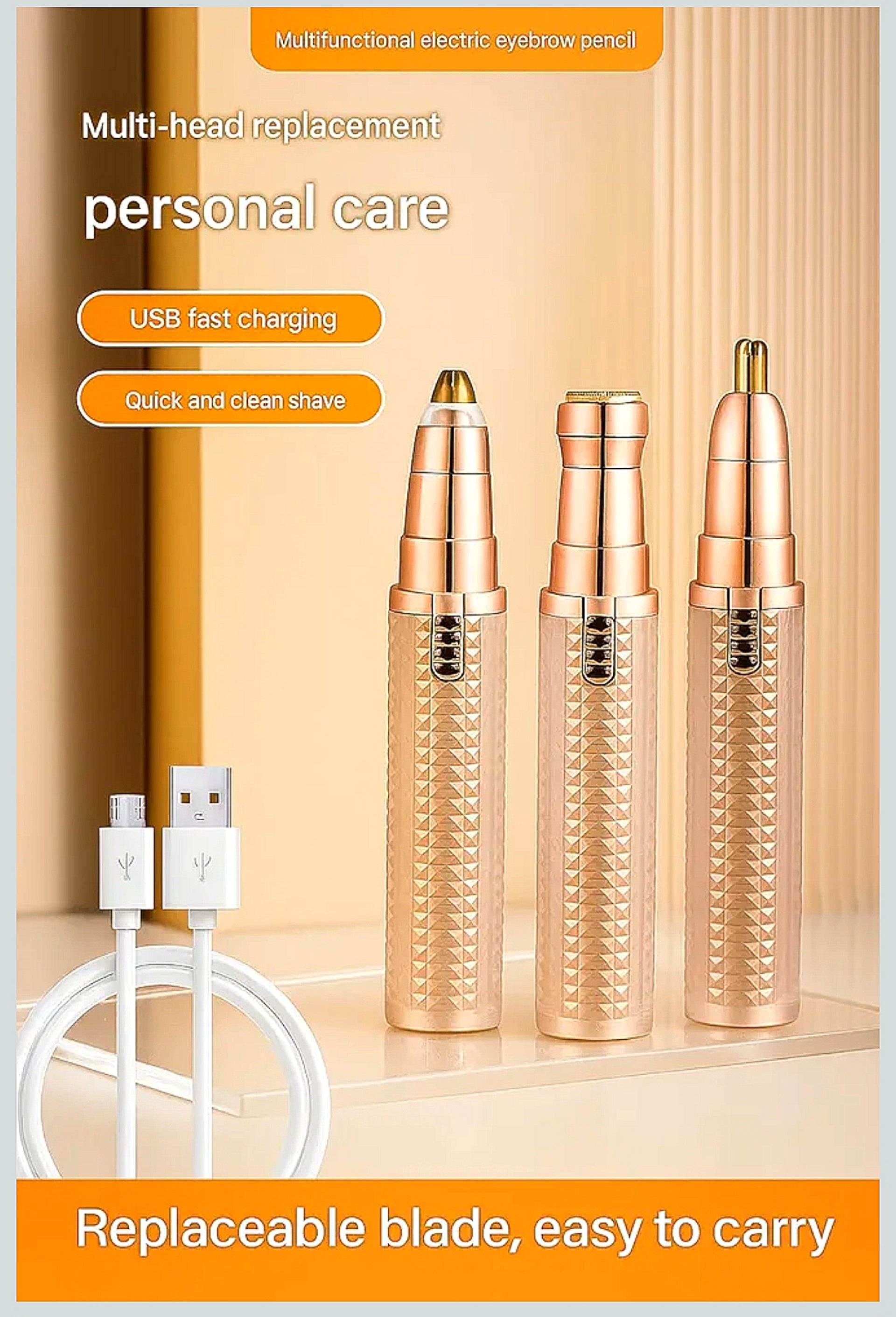 Multifunctional Electric Eyebrow & Facial Hair Trimmer – USB Rechargeable with Replaceable Heads