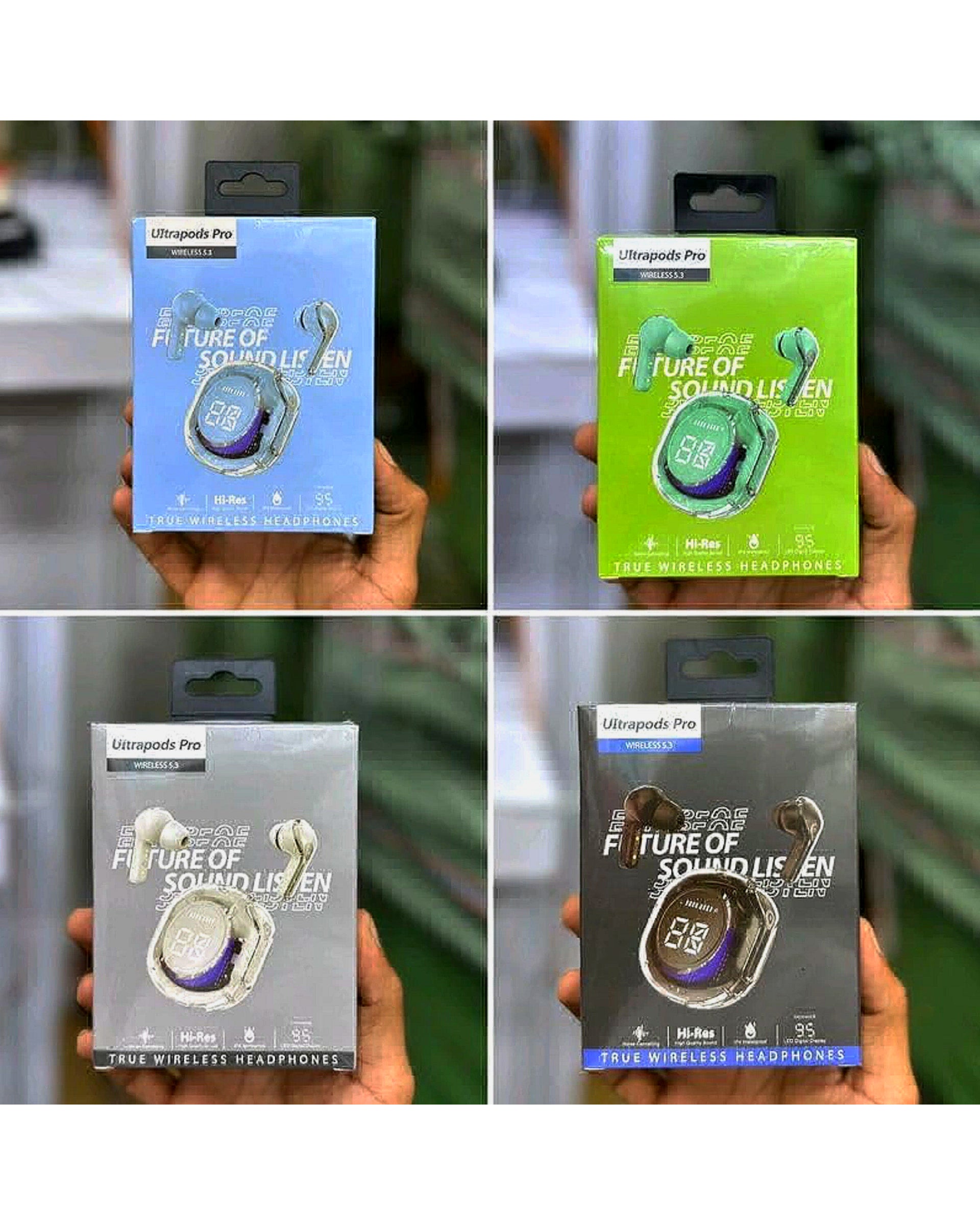 UltraPod Pro 2 Transparent Wireless Earbuds with LED Digital Display Charging Case